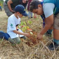 do 6º Grupo Escoteiro Baden Powell. Foi feito o Plantio de mudas nativas em local de reflorestamento.