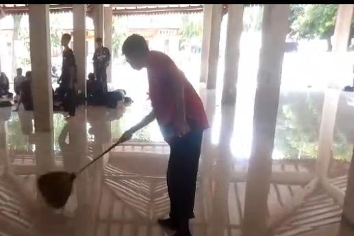 Saya membersihkan masjid dari menyapu masjid dari dalam dan luar masjid kemudian juga membersihkan jendela-jendela masjid yang ada debu-debu. Dan juga merapikan sarung dan mukena yang berantakan.