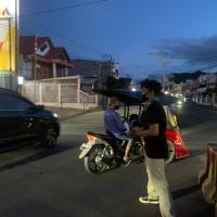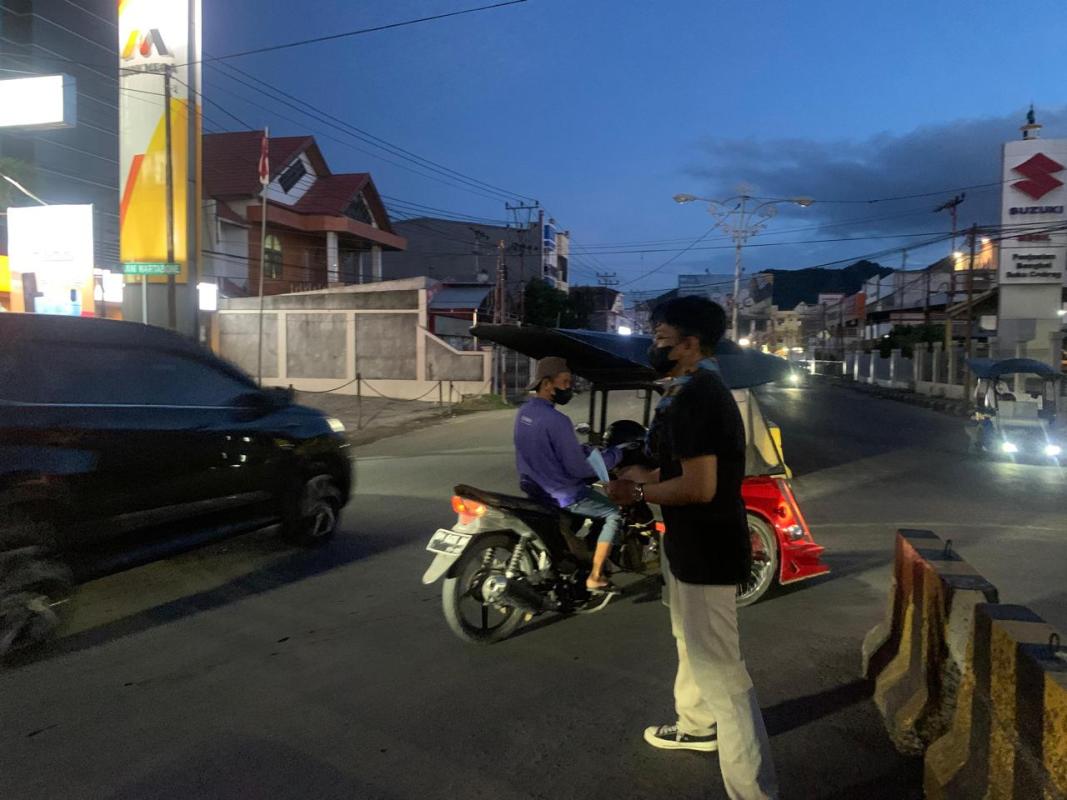 Pembagian masker di sekitar Bundaran Saronde, pusat Kota Gorontalo, dilakukan untuk mengurangi risiko kesehatan dari abu vulkanik akibat erupsi Gunung Ruang. Selain masker, warga juga diberikan edukasi tentang pentingnya perlindungan diri, menjaga kebersihan lingkungan, dan mengurangi aktivitas luar rumah. Inisiatif ini bertujuan membantu masyarakat tetap aman dan sehat dalam menghadapi dampak abu vulkanik.