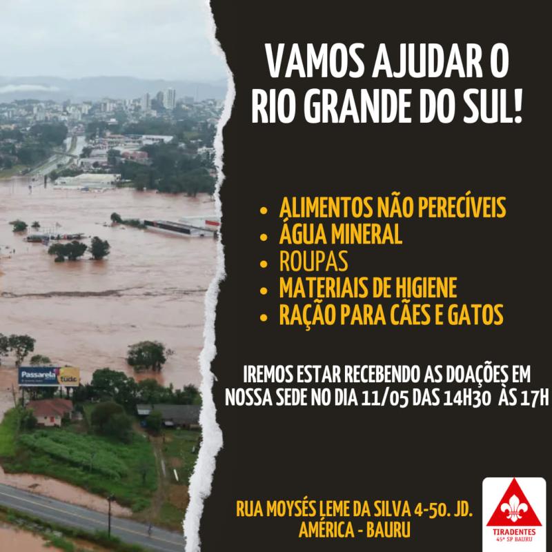 Em decorrência da Tragédia que vitimou milhares de pessoas no Rio Grande do Sul , que ocorreu no final de abril de 2024 e estendeu-se por muitos dias, onde fortes chuvas que castigaram o estado gaúcho, causando muitos estragos, decidimos ajudá-los no que fosse necessário.