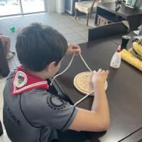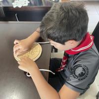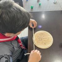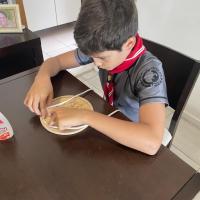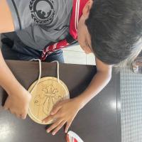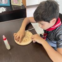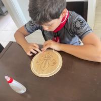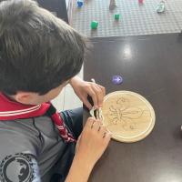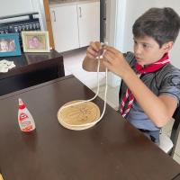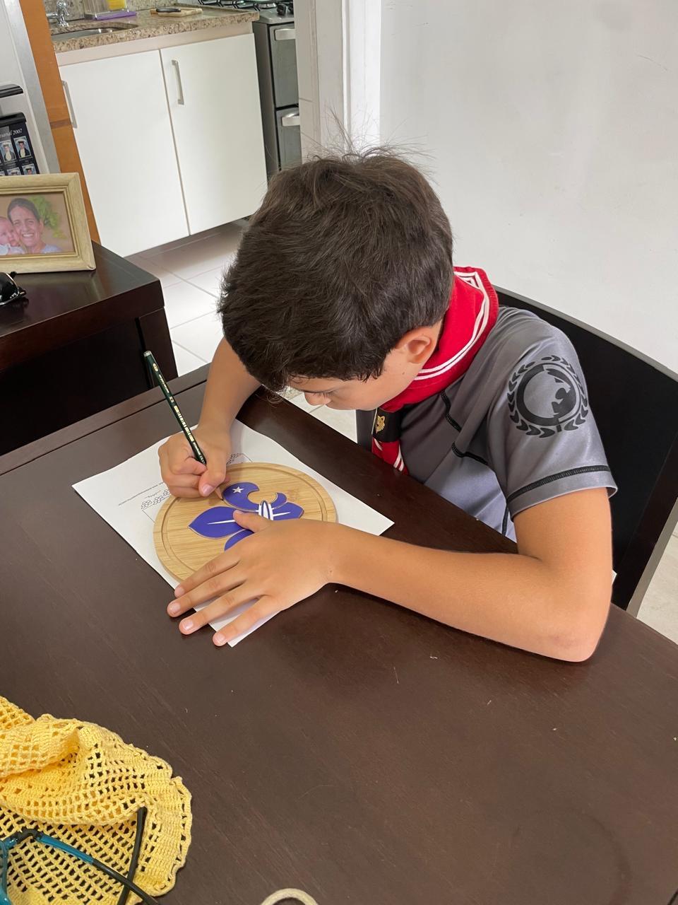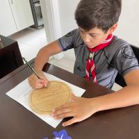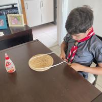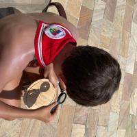 Busquei informação sobre a importância da energia solar e uma forma de levar esse tema para a Alcateia. Após definir que seria por meio da arte solar, reuni o material necessário. Fiz o desenho em madeira reciclada com lápis. Identifiquei um local e horário com boa incidência de sol para realizar a arte solar. Após a realização desta, fiz o acabamento usando uma corda. Para concluir, levei o trabalho para apresentar para a alcateia da qual faço parte.