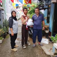 Saya dan teman-teman saya mendata jumlah orang atau warga yang dalam kategori kurang mampu di sekitar lingkungan sekolah saya, lalu setelah itu saya bersama teman-teman saya mulai membagikan sembako yang berisi bahan makanan seperti mie instan, beras, minyak, telur, dan lain sebagainya