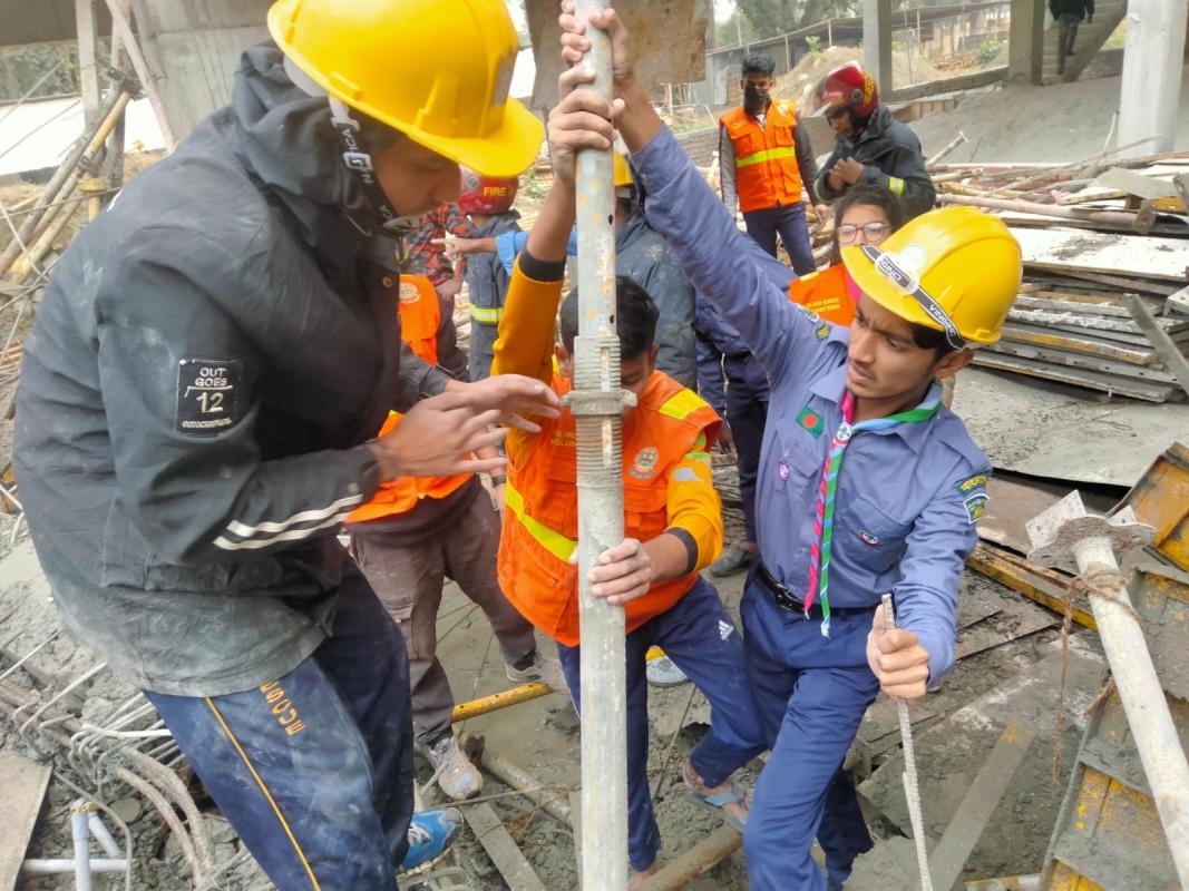 On 26th January 2024 at approximately 11.20 am I got the news that a building under construction of Rajshahi University has collapsed. Many workers are trapped inside the building. As soon as I got the news, my unit rushed to the spot with a team of 125 members. And help fire service personnel in rescue operations. I and the members of my unit worked hard for 2 days and managed to rescue a total of 16 workers alive.