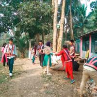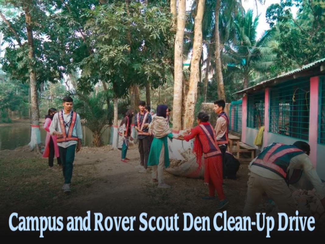 We formed a team of scouts and volunteers from Barguna Govt College who gathered cleaning tools and supplies. Together, we cleaned the college campus and the area around the Rover Scout Den by sweeping, collecting trash, and properly disposing of waste to make the environment tidy and safe.