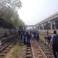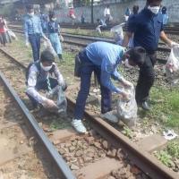 The environment cleaning program was held in Kamlapur railway station situated in Kamlapur I with my some of scout friends and other people attended this program. Here we cleaned the railway station area and also the rail track also awarded people to do not polluted the Komlapur railway station and other sides of this area