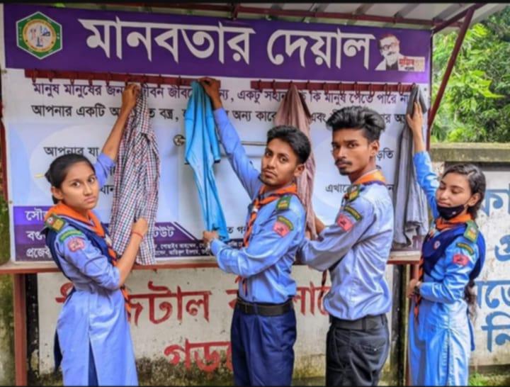 Members of Bogura Polytechnic Institute rover Scout Group initiated the create a "Humanity wall" programme on 05/01/2025 to 08/01/2025 at Colony, Bogura sadar, Bogura, 9:00 am in which 40 scouts participated actively. We collected some cloths and some things to implement this programm