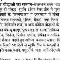 covid 19 मे योद्धा का किया सम्मान BSG DHQ Jodhpur Rajasthan India