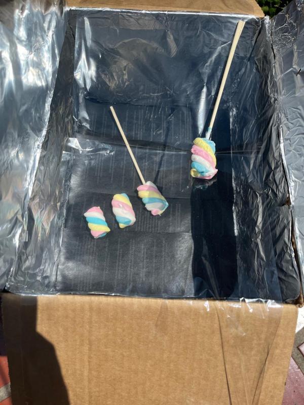 O ChatGPT disse: No primeiro dia, realizamos a montagem do fogão, utilizando uma caixa de papelão, três metros de papel alumínio e papel celofane. No segundo dia, buscamos um item para ser utilizado como termômetro e adquirimos os marshmallows. Também tentamos realizar o experimento, mas não havia sol suficiente. No terceiro dia, assamos os marshmallows e alcançamos a temperatura máxima de 77˚C.
