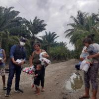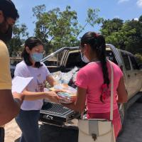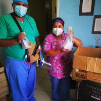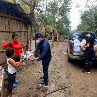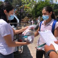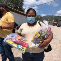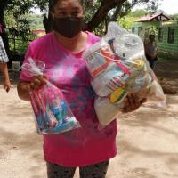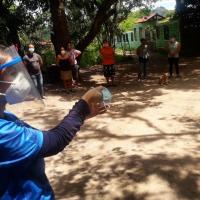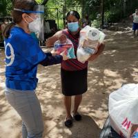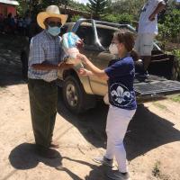 3. Delivery of 20 "solidarity kits" and 20 personal "hygiene kits" to the rural community "Ojo de Agua" in Yaguacire, municipality of Francisco Morazán. In addition to the delivery of the food baskets and personal hygiene kits, we gave an educational talk in which the Desprendete team taught how to correctly wash a commercial mask (surgical or KN95) and how to adjust it to the face if it is too big, mostly for children. They were also given a pamphlet (with illustrations to avoid confusion if people are illiterate) containing symptoms of COVID-19, isolation measures to be taken if someone in the household contracts the disease, how to wash their hands correctly, and contacts they can reach out to if they present symptoms.