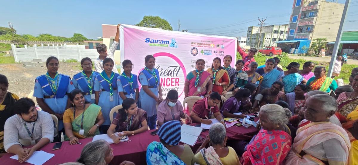 We executed the project through collaboration with the Rotary Club of Madras Mid-Town and local organizations. A free mammogram camp was organized at the Community Hall, Poonthandalam Village. Experienced doctors provided screening, consultations, and awareness sessions. Volunteers from Sairam Institutions and Scouts for SDGs coordinated logistics, registrations, and community mobilization to ensure maximum participation and outreach.