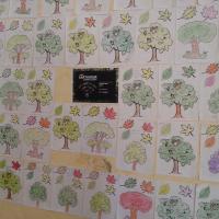 Au terme de la coloration chacun a inscrit son nom sur sa feuille et la coller au mur formant une forêt virtuelle.