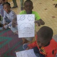 Ensuite repartis en 4 groupes, les louveteaux ont eu des images d'arbre sur une feuille papier A4 ainsi que des crayons de couleurs pour la coloration des arbres selon leur choix.