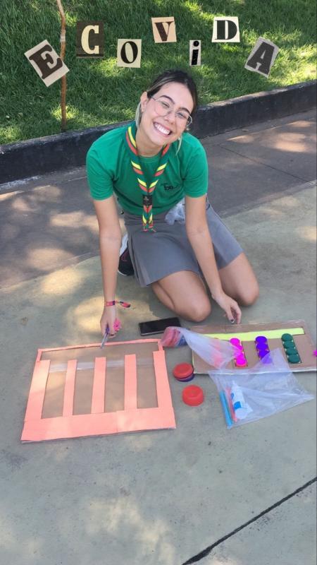 Meu projeto tinha como meta conscientizar meu grupo sobre os malefícios do descarte incorreto de lixo e mostrar como materiais que, iriam para o lixo, podem ter outras diversas possibilidades de uso. Juntei tampinhas de requeijão e leite, e alguns pedaços de papelão, esses materiais serviram para a montagem de um jogo que desafiava a mente de lobinhos e escoteiros. Além do jogo, realizei uma palestra sobre o que é a reciclagem e seus benefícios.