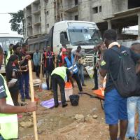 Le samedi 30 Juin à partir de 8h à Riviera Palmeraie, les EEUCI ont pris part à une action communautaire en faveur des sinistrés organisé par la Direction du Civisme et du Volontariat avec des structures partenaire et le U-report.Nous avons réaménager les voix qui était détruite et aussi ramasser les débris qui salissait les rues et le quartier pouvant provoquer encore des inondations.