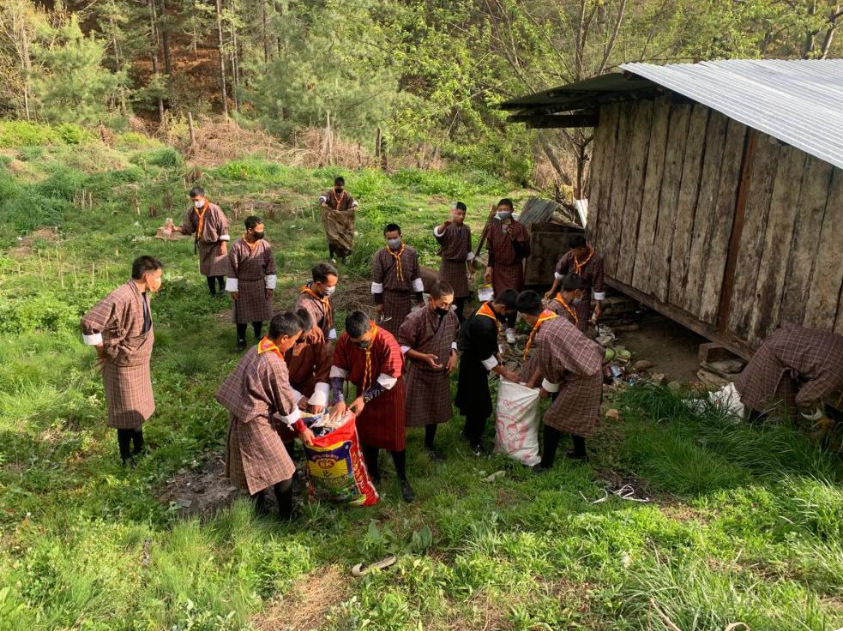 To memorialize the Earth day, the scouts volunteers of Tang Central School had involved in various cleaning activities in the school and around the nearby residents covering about 2 square kilometers (including a kindergarten, a primary healthcare center, office areas, Rimochen monastery and some commercial areas). Respective troops lead by one assigned adult leaders had conducted cleaning activities in the implemented area. The cleaning campaign was all done in 2 hours.