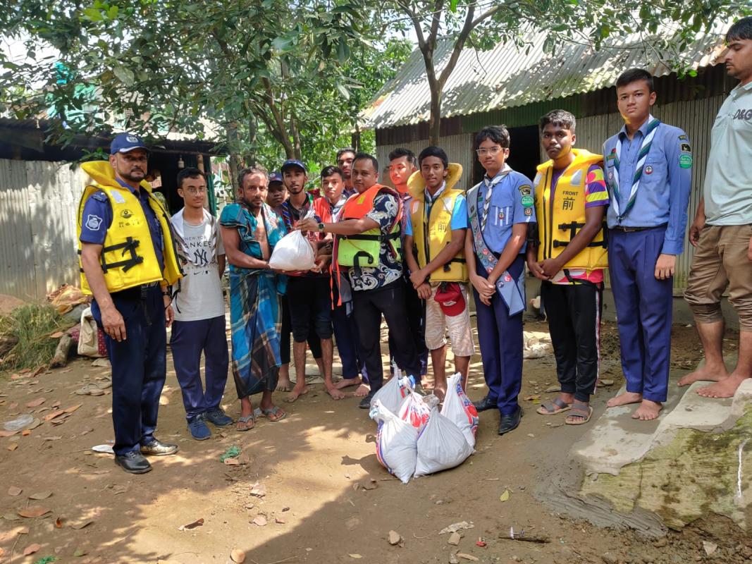 This initiative aimed at raising funds and providing assistance to flood victims in Burichong, Cumilla. From August 25 to 31, eight scouts with two Rover Scout members and a single adult leader participated in this project. After collecting sufficient funds, the scouts prepared and assembled about 200 relief packages which included all the necessary items. On August 31, We visited the site with local community members and police officers to help in the distribution.