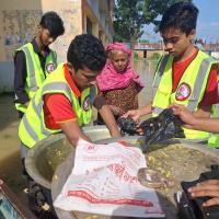 Food distribution among flood victims