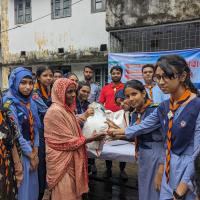 Food distribution among poor people.
