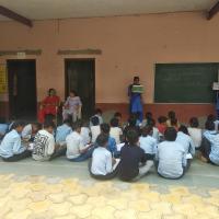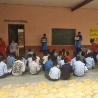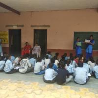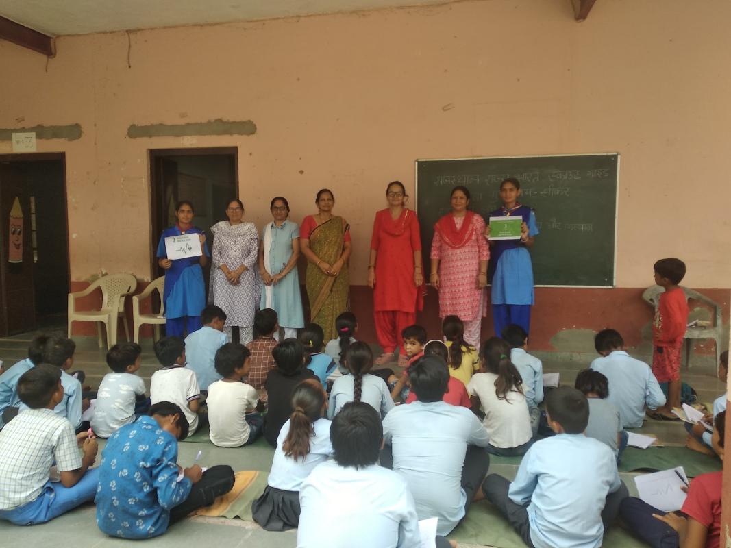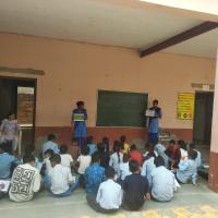 On sdg's target no.3 information was given about good health and well being through a speech in the government Higher secondary school and an oath was taken by making poster an prohibition of tobacco. Along with this ,by going to Anganwadi worker Riyanka sharma , assistant kaushalya saini and other women present were given information about health living and good health.