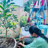 Prepared soil beds and installed pots on the rooftop, Planted seasonal vegetables, and flowers. Used organic compost to maintain plant health. Regularly watered and cared for the plants