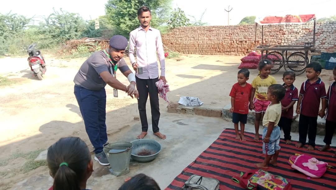 मुझे मेरे रोवर लीडर ने प्रोत्साहित किया कि मैं आंगनबाड़ी के छोटे बच्चों को हाथ धोने की अच्छी तकनीक के बारे में बताऊं पब्लिक स्कूल
