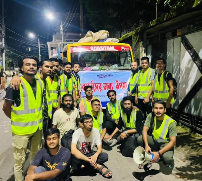 We raised funds within our unit and prepared 1,750 relief packages, each containing rice, oil, lentils, salt, potatoes, oral saline, drinking water, and hygiene items. The packages were distributed in Burichong, Cumilla, benefiting around 7,000 people. Members of the Metropolitan University Rover Scout Group, with support from locals and police, carried out the distribution through careful planning and teamwork.