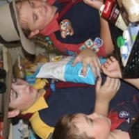 Yeppoon Scout group in Queensland Australia collected non perishable items to dontate to food relief and volunteered to clean up building. Stack shelves and pack client orders