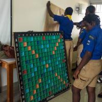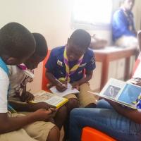 Venus des 04 paroisses que compte le district Abidajn Attécoubé ce sont 52 louveteaux, louvettes et chefs qui se sont donnés rendez vous a la mediathéque du groupe scolaire de l'école primaire de la dite commune. Trois temps ont meublé ce moment d'apprentissage, ce sont entre autre "Comment lire" "a quel moment faut-il lire" et "pourquoi faut-il lire". Sous le regard bien veillant des chefs qui étaient en charge de leur encadrement les louveteaux et louvettes divisés en 04 sizaines ont debattus sur chacun des termes avec des idées plus belles les unesque les autres donnant ainsi naissance a plusieurs résolution prises par chaque groupe et qu'ils devrons suivre a leur retour chez eux a la maison. le clou de cette activité a été le jeu de scrabale geant qui consitait a écrire plusieurs mots liés a la "Paix". Ce jeu a vu une trés belle participation des louveteaux et louvettes qui ont ecris plus de 20 mots lié a la pratique de la paix.