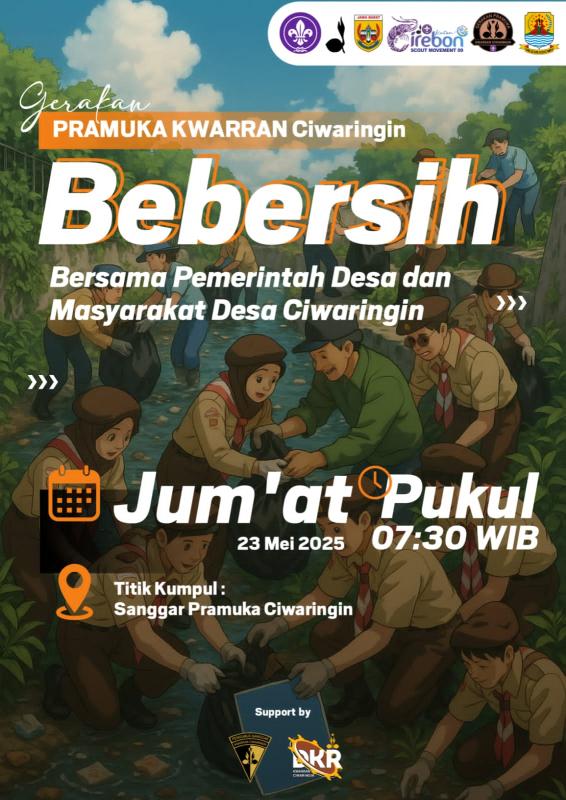 Pelaksanaan Aksi Pramuka Bersih-Bersih diinisiasi oleh Gerakan Pramuka Kwartir Ranting Ciwaringin bersama Dewan Kerja Ranting (DKR) Ciwaringin sebagai bentuk pengabdian kepada masyarakat. Kolaborasi dengan Pemerintah Desa menjadi kunci suksesnya kegiatan ini, di mana perangkat desa turut mendukung dari segi sarana, logistik, dan koordinasi lapangan.