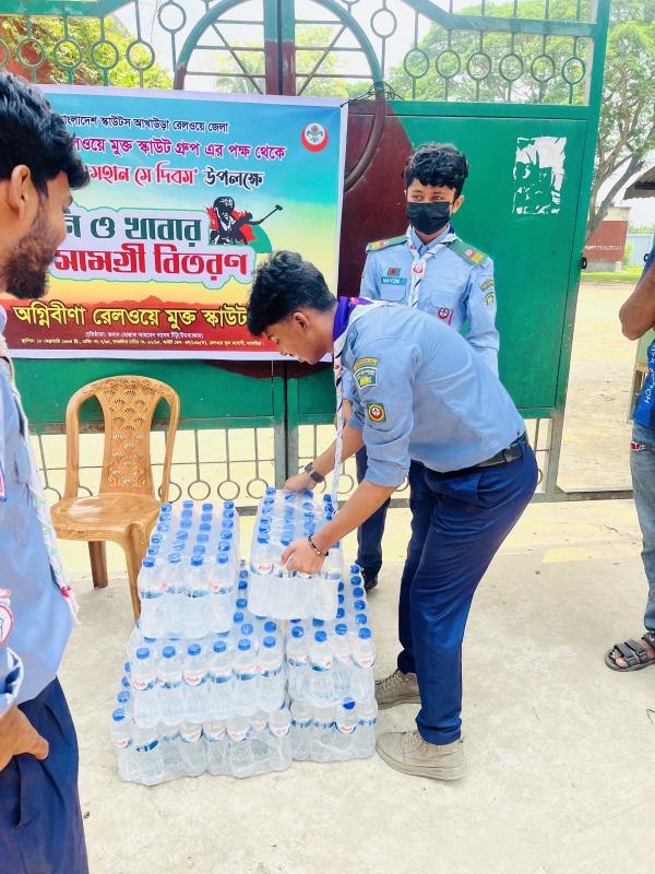 অগ্নিবীণা রেলওয়ে মুক্ত স্কাউট গ্রুপ এর পক্ষ হতে আন্তর্জাতিক শ্রমিক দিবস উপলক্ষে আয়োজিত খাবার পানি ও খাদ্য দ্রব্য বিতরণ কাজে নিযুক্ত হয়েছি। আমরা যারা প্রতিদিন নিয়মিত খাবার পাই, হয়ত বুঝতে পারি না যে কিছু মানুষ দিনের শেষে একবেলার আহারের জন্য কত সংগ্রাম করে। এই চিন্তা থেকেই আমরা সিদ্ধান্ত নিই এবং নিজেদের সামর্থ্য অনুযায়ী কিছু খাবার এর ব্যবস্থা করে নিজেরা ৩০০ প্যাকেট করি।ব্যাগ এ করে সুন্দর করে বেধে বের হই এবং রিকশাওয়ালা, গার্মেন্টসকর্মী,অসহায় মানুষদের দিয়ে সহযোগিতা করার চেষ্টা করি।