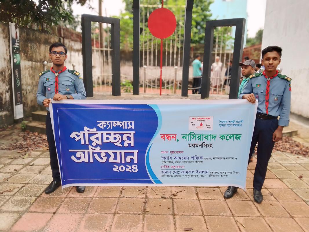 “ক্যাম্পাস পরিষ্কার অভিযান ২০২৪” নাসিরাবাদ কলেজ রোভার স্কাউট গ্রুপের উদ্যোগে সফলভাবে অনুষ্ঠিত হয়েছে। সকাল ৯টায় কার্যক্রম শুরু হয় এবং দুপুর পর্যন্ত চলে। রোভার সদস্যরা কলেজের শহীদ মিনার, ক্লাসরুমের সামনে ও চারপাশে ময়লা পরিষ্কার করে নির্দিষ্ট জায়গায় ফেলে। সবাই মিলে পরিচ্ছন্নতা ও সচেতনতার বার্তা ছড়িয়ে দেয়। এই সময় শিক্ষক ও স্কাউট কর্মকর্তারা উপস্থিত থেকে রোভারদের উৎসাহ দেন। পুরো কাজটি মিলেমিশে, আনন্দের সাথে সম্পন্ন হয়।
