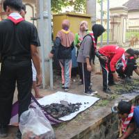 Kegiatan kerja bakti di gedung pramuka