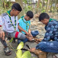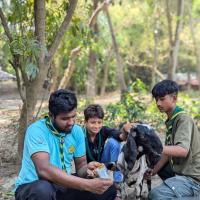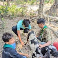 Being kind to animals is a part of the Scout Law. Understanding this principle, I along with five other members of our Scout team visited a local goat farm. There, we found around 61 goats that were sick, suffering from cold and parasitic infections. Together with a few animal health experts, we carried out a three-day program, and by the grace of Allah, we were able to help the goats recover.