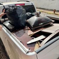 Foi retirado do bosque mais de 11 sacos de 100L de residuos plasticos, tambem foram retirados restos de moveis que foram deixados la