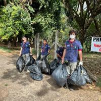 Primeiro, foi feita uma limpeza do bosque onde todos os escoteiros estavam equipados com luvas grossas para que a segurança de todos fosse preservada recolhendo lixos pequenos e juntando os entulhos maiores para que esses pudessem ser posteriormente retirados pela prefeitura