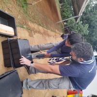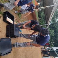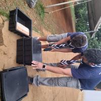 Os lobinhos montaram a composteira e ao final do dia coletaram os materiais orgânicos e fizeram a primeira carga da composteira.