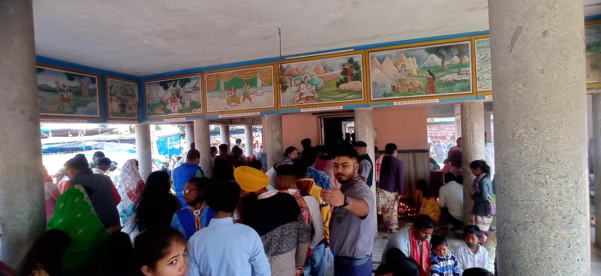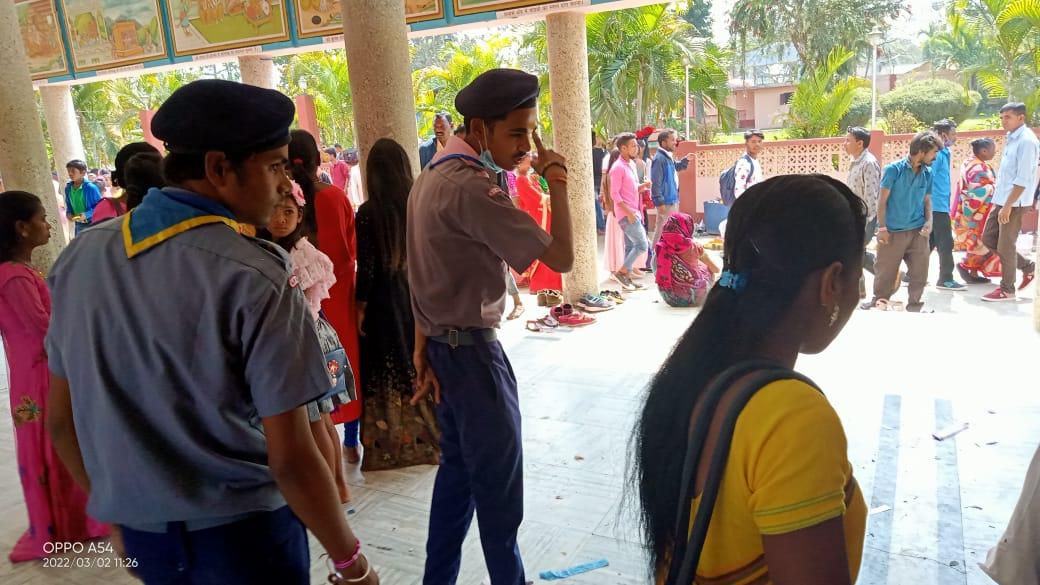 A team of 25 members of Bharat Scouts and Guides, Northeast Frontier Railway, Tinsukia District Association rendered service on the second day of Maha Shivratri Mela at Shivdham Temple, Tinsukia. A numerous number of devotees visited the temple to seek the blessing of Lord Shiva. On the second day, the members helped the Temple Committee with maintaining law and order, and helped the devotees to make queues in a disciplined way, maintained the rush, and conducted the event smoothly.