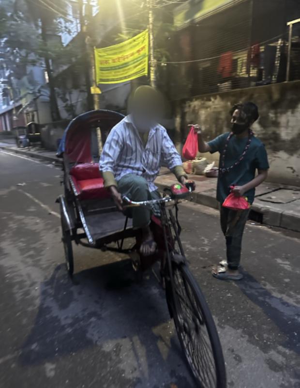 With personal planning and collaboration, we prepared and distributed meals directly to rickshaw pullers in Khilgao Each meal was served hand-to-hand with care and kind words, creating a small yet meaningful human connection.