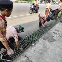 membersihkan sampah plastik