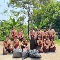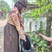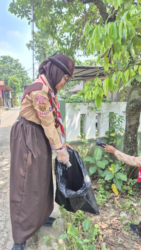 bakti sosial pramuka mem bersihkan linkungan sekitar dengan kegiatan gotong royong, membersihkan sampah, dan merawat tanaman. kegiatan ini mehujutkan linkungan yang bersih, sehat, dan lestari.