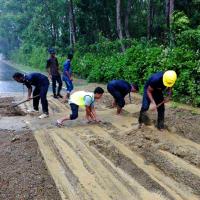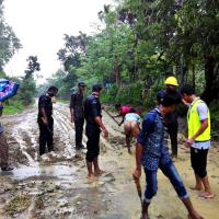 প্রবল বর্ষনে পাহাড় ধ্বসে বন্ধ হয়ে যাওয়া কাপ্তাই সড়ককে চলাচল উপযোগী করতে অবিরাম কাজ করেন ১নং কাপ্তাই জেলা নৌ রোভার দলের ৪জন স্বেচ্ছাসেবক।