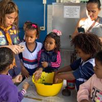 As criancas estavam envolvidas e demonstraram entusiasmo durante todo o processo.