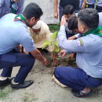 We successfully completed a three-day tree plantation program. On the first day, we collected saplings and selected sites at the school, market, and community clinic. In the next two days, 33 scouts planted around 150 saplings — 50 at the school, 75 in the market area, and 25 at the clinic. Regular care is being provided, benefiting the community. This reflects our commitment to the environment and the spirit of Scouting.