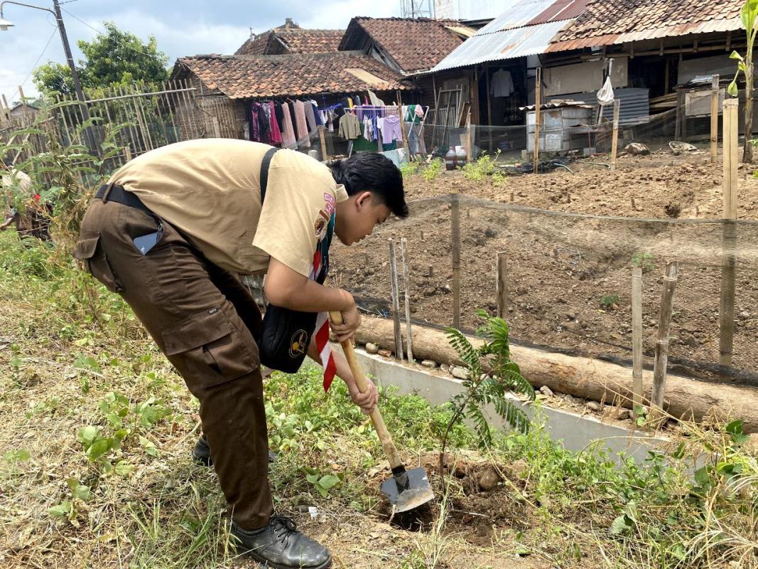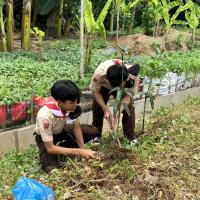 Menanam pohon di lingkungan asrama dengan mengajak semua penghuni asrama untuk menanam pohon agar asrama semakin sejuk dan tidak mudah longsor, selain itu kami juga bekerjasama dengan kelurahan wonosari untuk menanam di daerah keliurahan wonosari