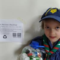Implementamos 2 contos de coleta de lacres de latinhas, em condomínio e loja comercial. Os lacres recolhidos serão enviados ao grupo escoteiro Guaracy, que efetua a venda do material e destina a verba para aquisição de cadeiras de rodas aos necessitados.