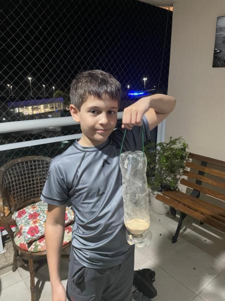 Take plastic bottles and transform in plastic bird feeder