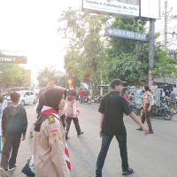 Pramuka Bantu Atur Lalu Lintas Jelang Lebaran