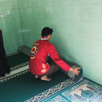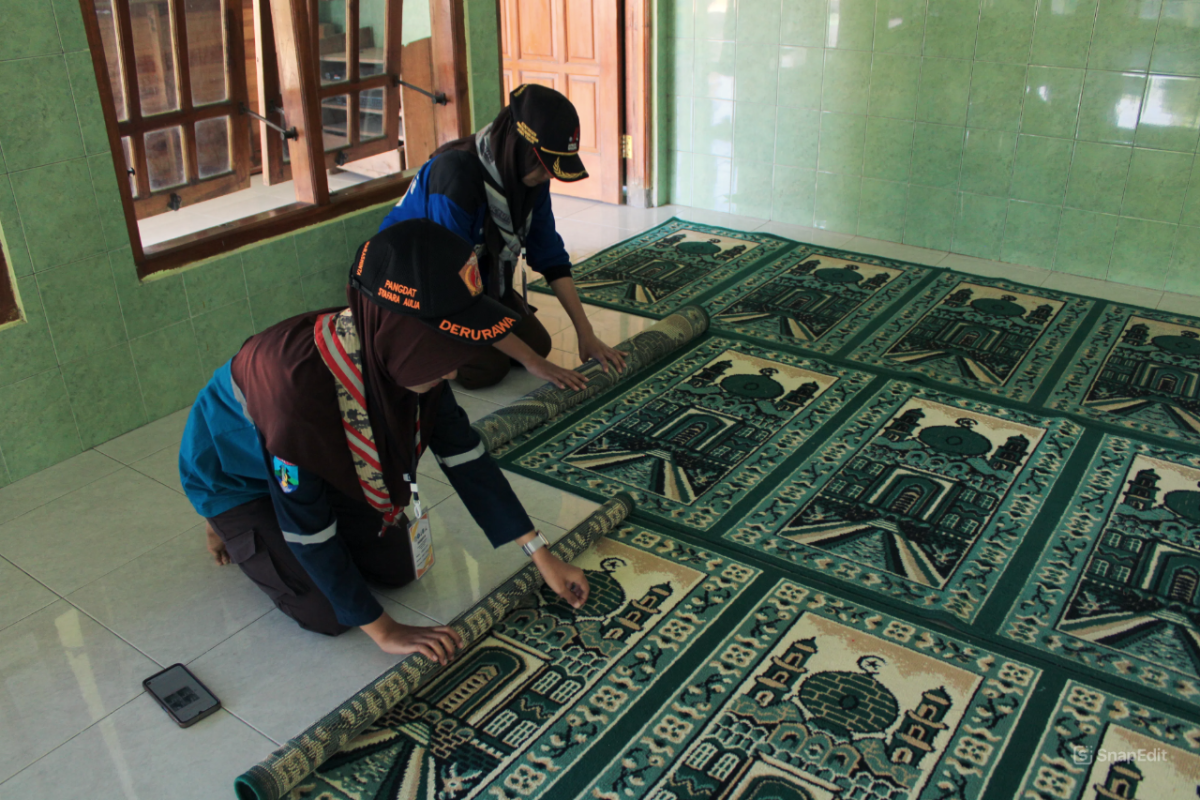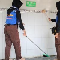 Kegiatan bersih-bersih mushola dilaksanakan pada tanggal 1 sampai 10 Juli 2025, setelah pelaksanaan kegiatan pemugaran rumah tidak layak huni. Adapun bentuk kegiatan meliputi pembersihan menyeluruh mushola seperti menyapu dan mengepel lantai, membersihkan tempat wudhu dan toilet, merapikan rak-rak Al-Qur'an, serta membersihkan langit-langit dan ventilasi guna menciptakan suasana yang lebih nyaman dan higiens untuk beribadah.
