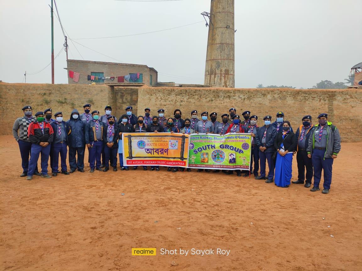 On 23rd January 2022, to commemorate the 125th birth anniversary of the legendary hero of India, Netaji Subhas Chandra Bose, South Group of Kanchrapara District Association of Eastern Railway Bharat Scouts and Guides organized a Project called "Aboron" - Helping Hands in the Itbhata area of Halisahar locality to stand beside the needy people in distribution of clothes. More than 300 clothes were distributed to 100 needy people.