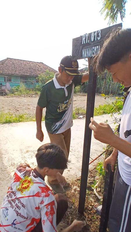 I worked on this project in one day, working earnestly and diligently, I worked with the involvement of local community members, not forgetting to give permission to the head of the local RT. We made a signpost that read "RT. 013 Ds. Wanakerta" we made 2 signs and stored them in different places, and their placement is very important for information for guests or new residents.
